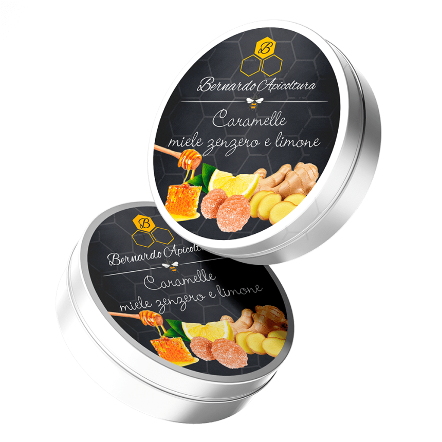 Caramelle miele, zenzero e limone dal gusto caldo e agrumato, ideali per offrire sollievo naturale alla gola e una piacevole sensazione di benessere in ogni momento della giornata.